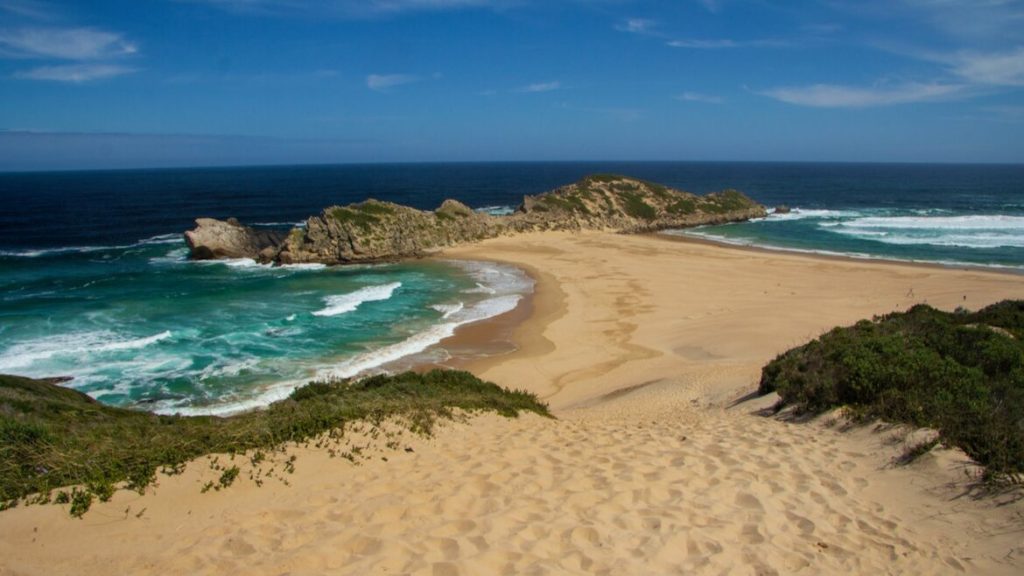 A small island on the wild side of Robberg Nature Reserve traps sand driven ashore by wind and currents. When the sand dries, the wind blows it up the seven dunes. Where In time, the sand will eventually slide down into Plettenberg Bay.